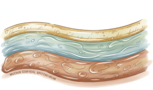 最も内側には「ムチン層」があり、角膜に直接触れて涙を目の表面に留める役割を果たします。中間には「水層」があり、栄養分と水分を含んでいます。そして表面には「油層」があり、被膜として水分の蒸発を防いでいます。