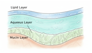 涙は目の表面に薄い膜を形成し、光を均一に屈折させる役割を果たしています。この涙の膜が不安定になると、光が乱反射し、視界がぼやけたり、夜間のまぶしさや見えにくさにつながることがあります。