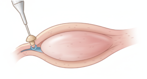 点眼薬で改善が不十分な場合、涙の排出口を塞ぐことで涙を保持し、症状の改善を図ります。