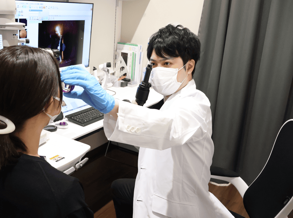 通常は目薬の麻酔のみでほとんどの方が痛みを感じないとおっしゃっています。痛みに弱い方は追加麻酔をして、できるだけ痛みを感じないようにしています。痛みの感じ方には個人差がありますので、痛みを感じた場合はおっしゃってください。
